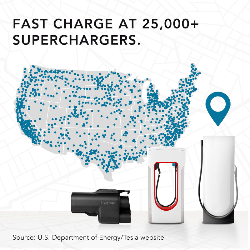 Supports up to 500 kW charging power for ultra-fast, reliable energy delivery at Tesla Superchargers across North America.